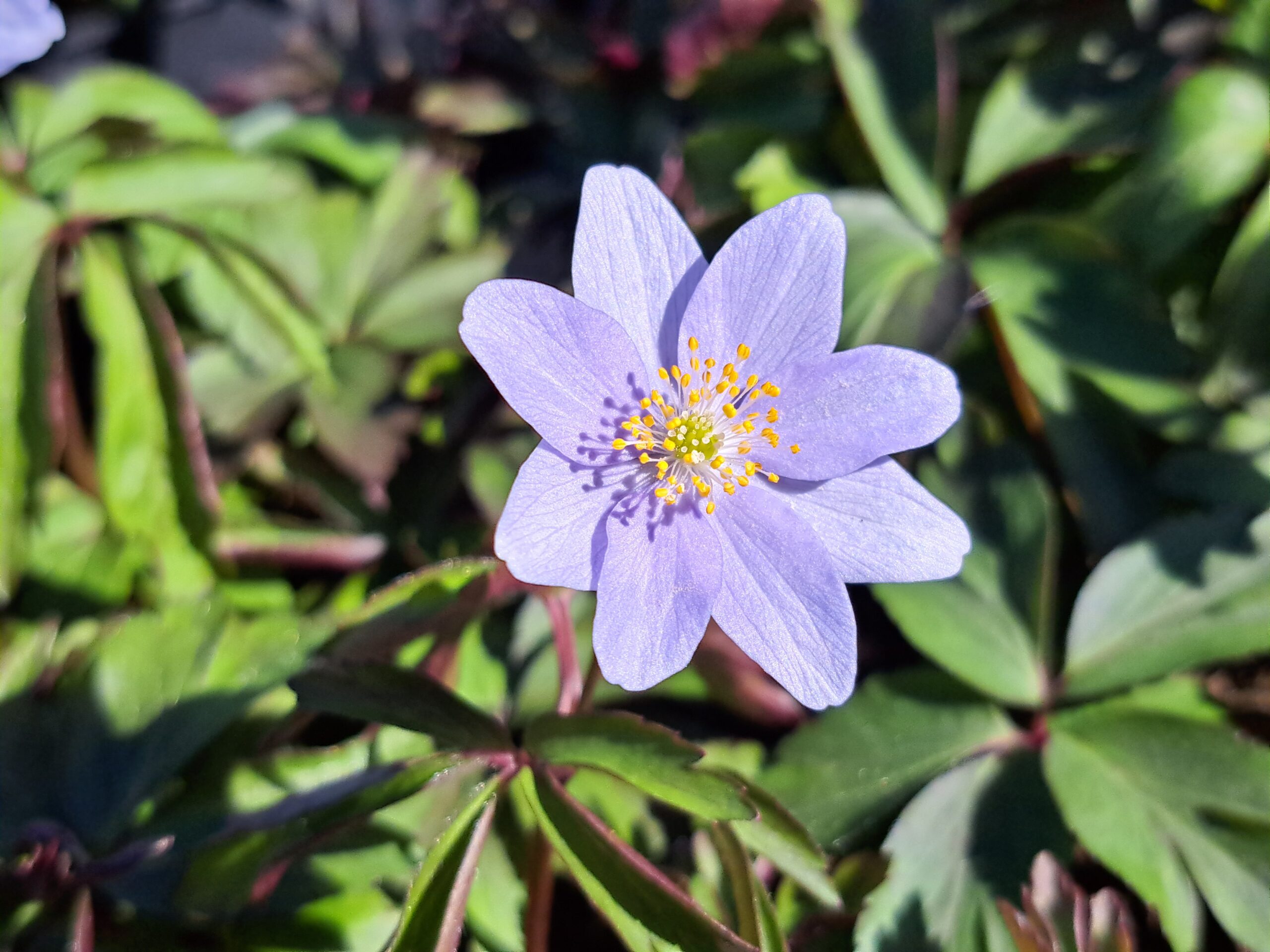 Large blue flowers in spring. Best in partial shade in a moisture retentive soil. Height 20cm.