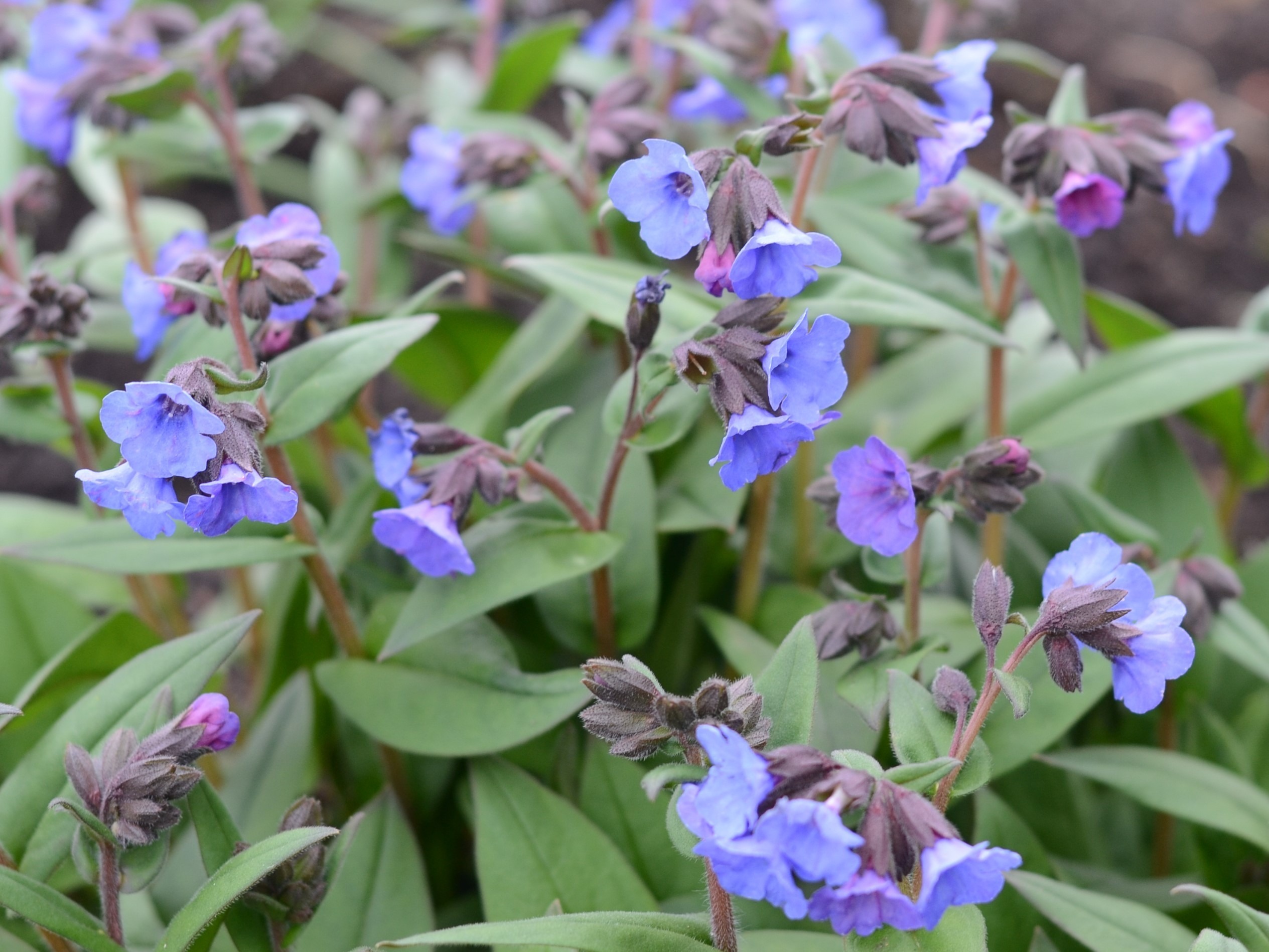 One of the earliest to flower, bright blue blooms fade to purple with age. Plain green foliage. Best in partial shade. Height 30cm. RHS Award of Garden Merit.