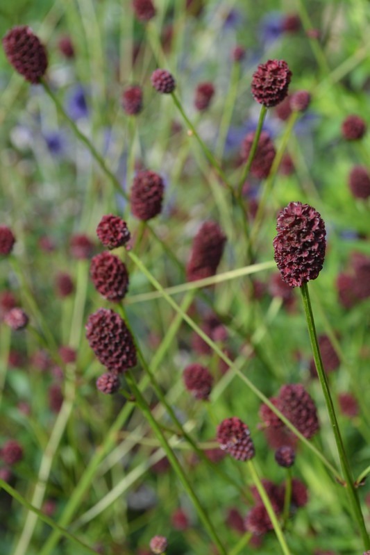 Maroon bobble flowers on tall stems. Much admired in our garden. Sunny spot and moisture retentive soil. Height: 120cm