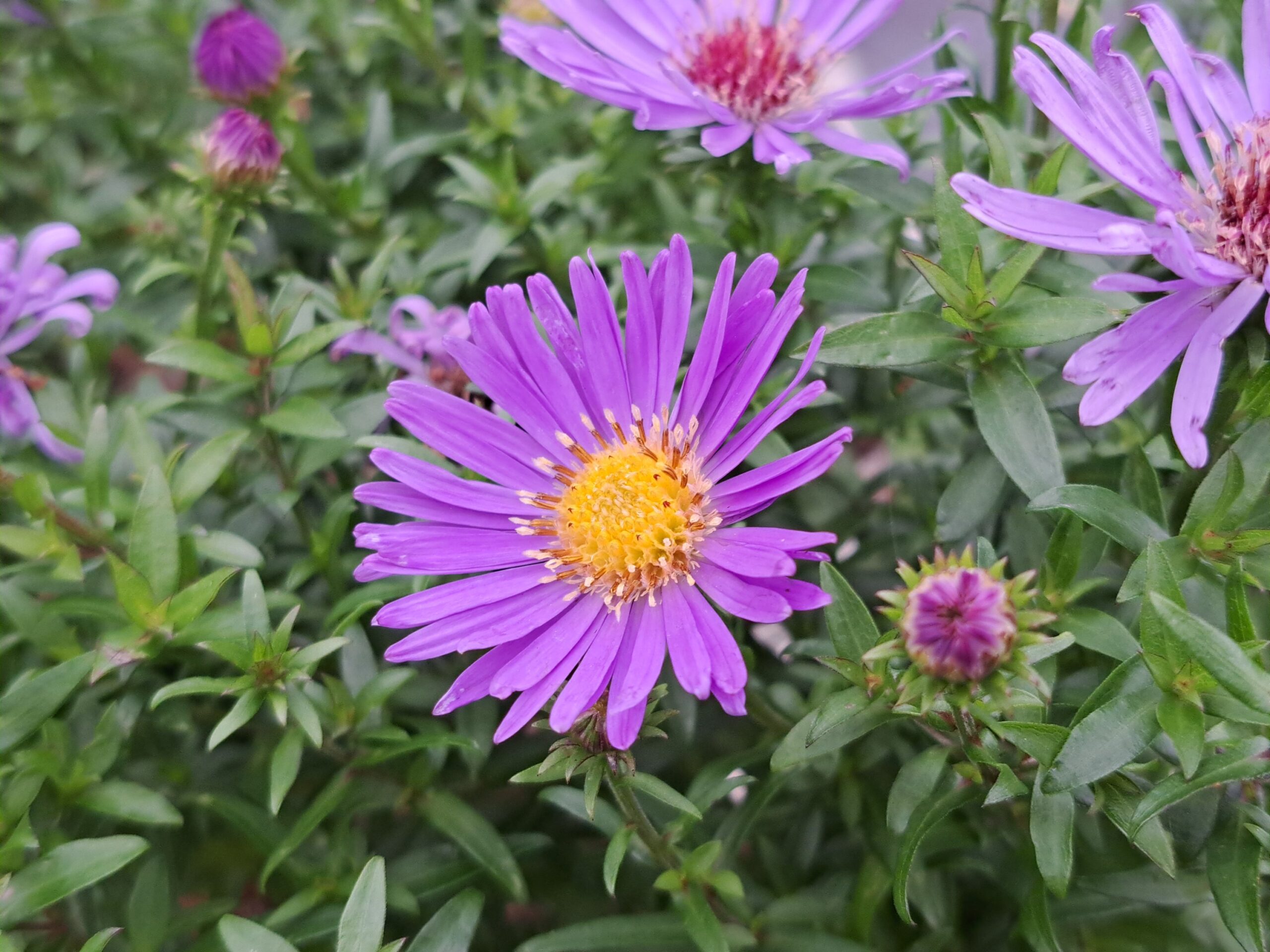 A compact Michaelmas Daisy with masses of purple-pink daisies from August onwards. Sun or partial shade. Height 30cm.